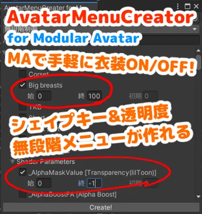 VRChatアバターのメニューをModular Avatarで簡単に作れるツール
