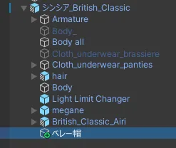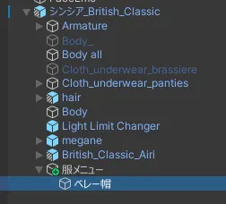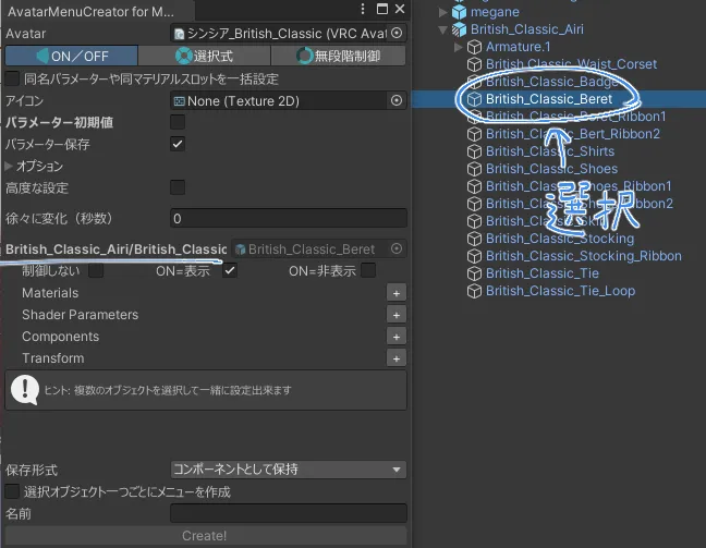 アバター内にある操作したいオブジェクトを選びます。