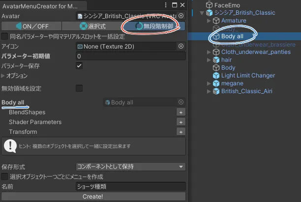 Section titled “モードを変えてオブジェクトを選択”モードを「無段階制御」にします。